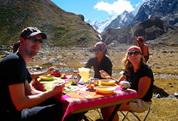 Short trek to Tocllaraju base camp, experience the 360-degree views in the Ishinca base camp on our 3 day Ishinca Valley trek.